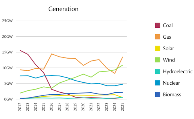 Figure 1: National Grid generation in Gigawatts, averaged over the year, 2012-present day [ https://grid.iamkate.com/ ]