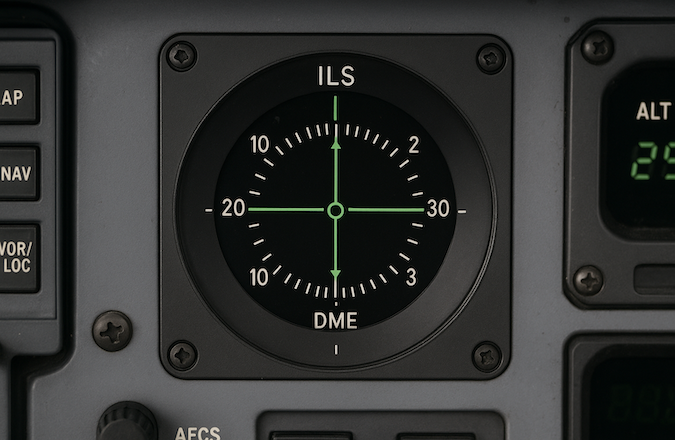 A representation of an ILS cockpit instrument is presented in Figure 2 below. The horizontal green line gives the pilot the glideslope information and the vertical line gives the localiser information. By keeping the crosshair in the middle of the instrument, the pilot will know that it is on the correct approach into land at the aerodrome despite limited to zero visibility due to weather conditions.