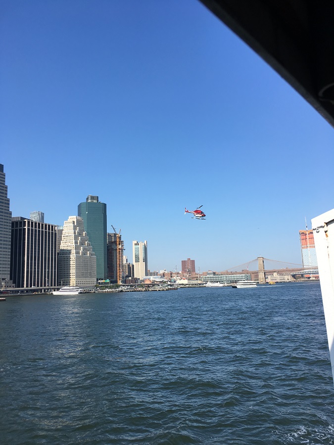 Figure 2: A helicopter operating alongside tall buildings with glass façades