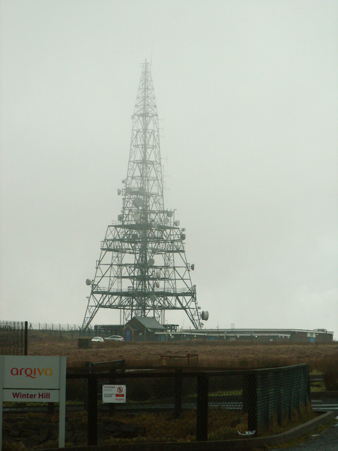 Figure 1: A foggy photo of the telecoms mast at Winter Hill.