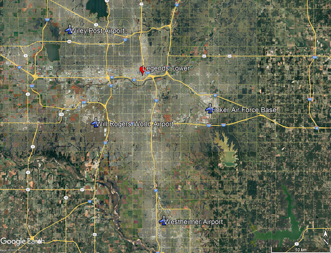 Additional letters sent to the FAA outlined how the tower’s height would complicate and lengthen the time and paths for take-offs and landings [3]. The most notable author was from American Airlines, who told the FAA that the tower’s impact would cause the more than 4,000 flights a year at OKC Will Rogers International Airport to struggle with the ensuing climb restrictions on departures.