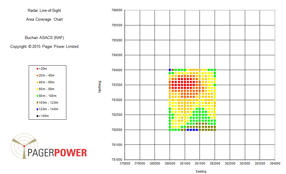 The image below shows a radar coverage map of the site area from the RAF Buchan radar.